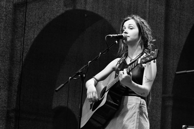 Alongside visual art, I write poetry and songs, perform as a singer-songwriter, and accompany myself on guitar. I also work in the field of graphic and visual design, including brand identity and UX/UI design.