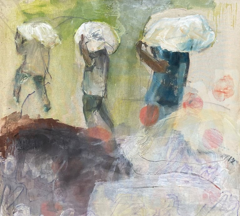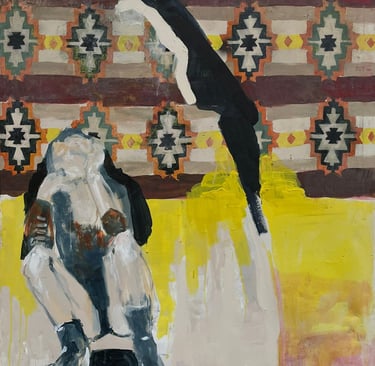A painting inspired by the documentary The Rape of the Samburu Women, exploring racialized rape, systems of domination, colonial legacies, and the vulnerability of Indigenous peoples.