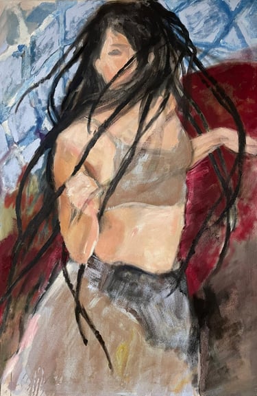 Themes of femininity, women’s status in society, and the issues of discrimination and violence against women have been central to my work since my studies. This focus culminated in my diploma project “Sexual Violence Against Women and Girls” (2023), a series of nine paintings, and continues in later works and in the song “The Art of a Woman,” reflecting on how society treats women—from everyday interactions to acts of violence and abduction.